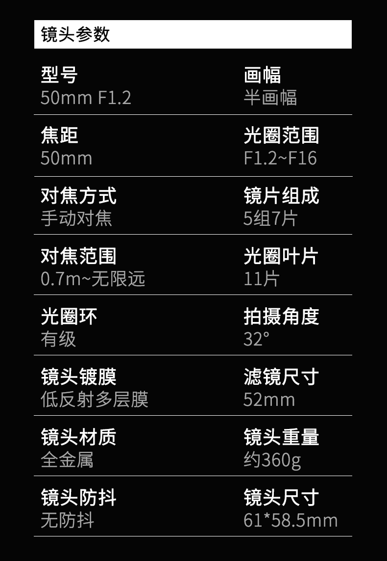 50mm F1.2 半画幅